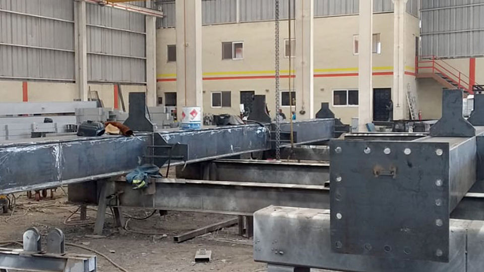 Contamos con taller para la fabricación de estructuras, el cual consta de 2 naves y 1 patio, tenemos la capacidad para fabricar más de 400 toneladas mensuales, así mismo cada nave cuenta con 2 grúas viajeras con capacidad de 5 y 10 toneladas cada una.